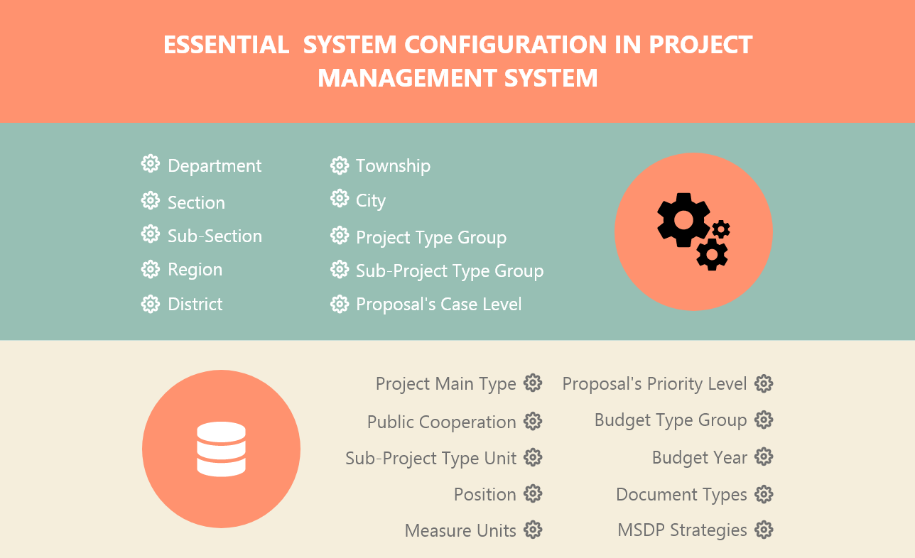 A simple system configuration can help user to manage and modify data of the project such as budget year, project types, sub project type, measure unit etc.