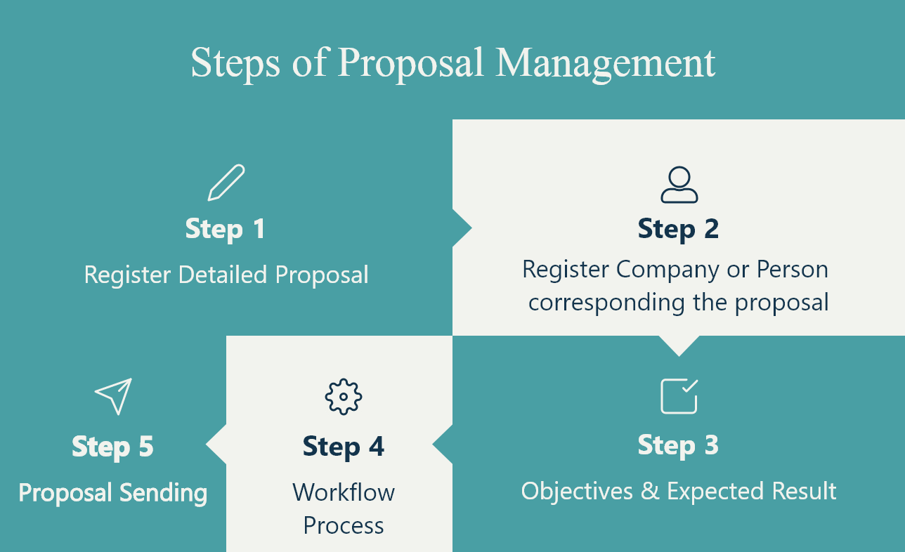 The basic step of project is start with the detail proposal for the project. The proposal management module starts with user filling information about the projects, such as project types, location, budget etc. Step 2 includes detail information of the proposer, and step 3 includes the purpose of the projects, obstacle which can encounter during implementation of the projects, expected results and sustainability plan of the projects. A complete proposal is sending to respective Ministry through a workflow process which start from Township to District, District to Region and Region to relative departments.