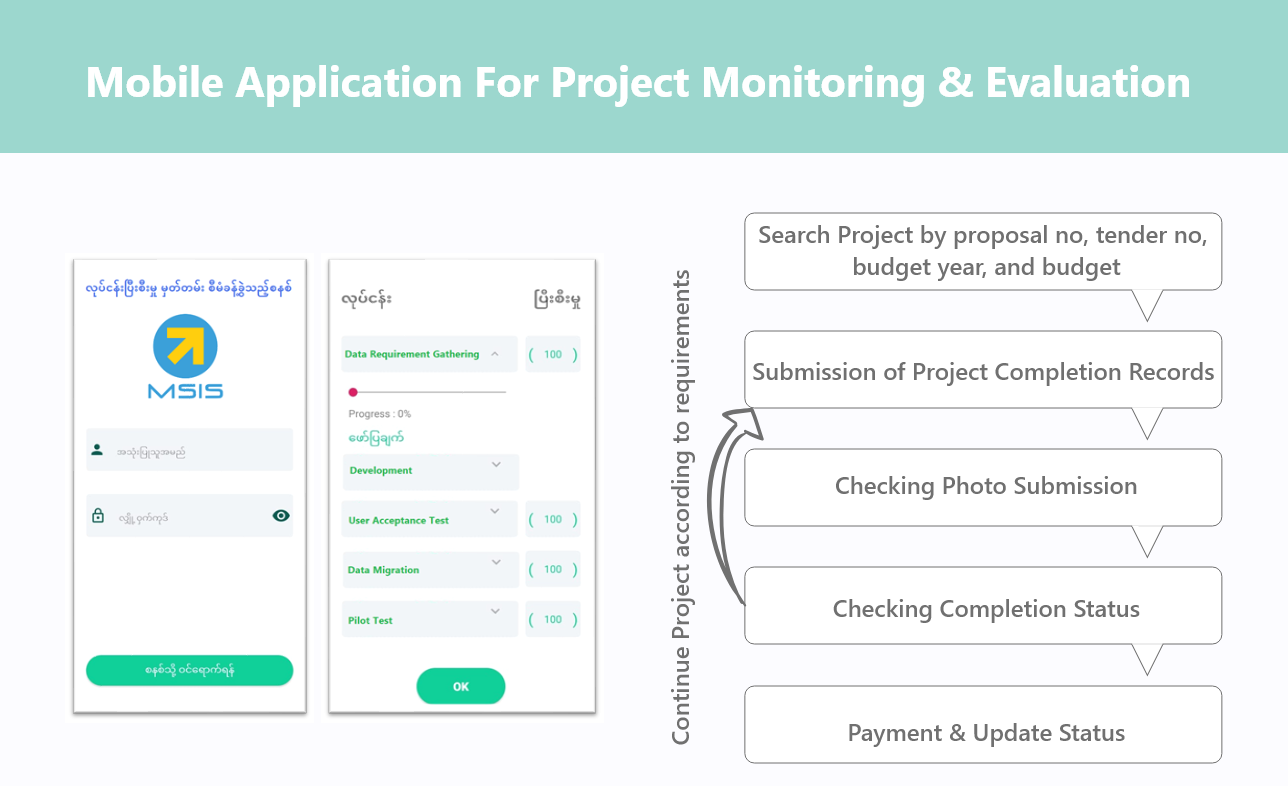 A project Management System is especially designed for Government Sector which can manage and record detailed information of the project. The system is purposed to manage all project information, project’s ongoing status, budgeting status, and completed the status of the project. The system includes not only a proposal management process that can submit through the township, district, region to Ministry but also include a project planning process on which projects are going to be implemented with how many budgets. The system also includes Tender Management Process which can record which companies are implementing the approved projects. There is also a Mobile Application that allows the system to monitor the status of how many percentages are completed on the project. A Project Management System includes modules such as Proposal Management Process, Workflow Management, Project Planning, Tender Management, Project Monitoring and Evaluation, Document Management, Meeting Record Management, Project Type Management, User Role, and User Management, etc.